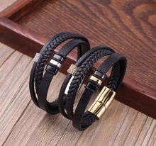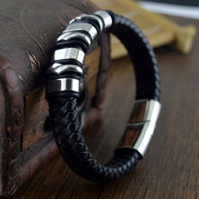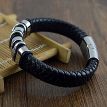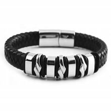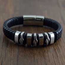 Bransoleta Skórzana Stalowa Czerwona Czarna Srebrna Mocne Zapięcie Magnes