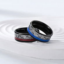 Niebieski Srebrny Szczotkowany Pierścień