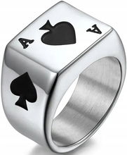 Pierścień Sygnet Srebrny Niebieski Stal Szlachetna