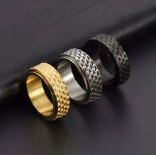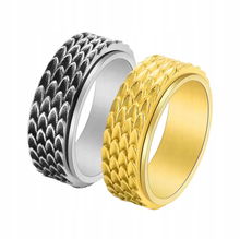 Pierścień Łańcuch Rotacyjny Czarny Srebrny Sygnet