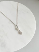 Naszyjnik perłowy KWIATOWY kryształki DŁUGI srebrny BOHO glam vintage