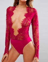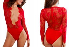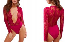 Piękna Czarne Body Bielizna Damska Koronka Dekolt
