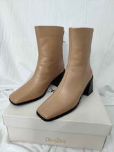 DeeZee Botki Beżowe 38 Słupek Kwadratowy Nosek Eleganckie