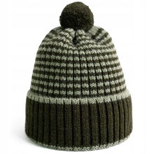 Czapka z pomponem ZIMOWA w paski zielona CIEPŁA