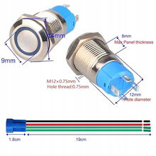 Chwilowy przełącznik wciskany 12 mm 2 szt. niebieski
