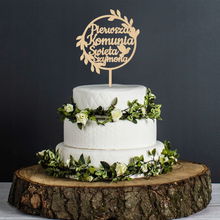 DREWNIANY TOPPER ŚLUBNY MŁODA PARA WESELE DECOUPAGE DEKOR ZE SKLEJKI 13CM
