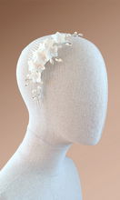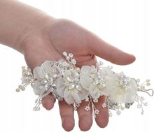 Srebrny grzebyk białe kwiaty perły cyrkonie ozdobny wizytowy ślub przyjęcie