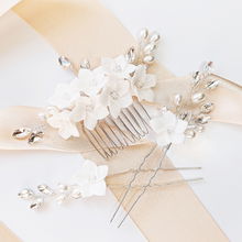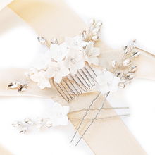 Srebrny zestaw kokówek do włosów z kwiatami ceramicznymi perełki cyrkonie