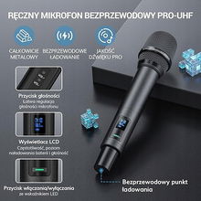 BIETRUN UHF BEZPRZEWODOWY MIKROFON RĘCZNY ZASIĘG 50 M 6,35 MM I 3,5 MM