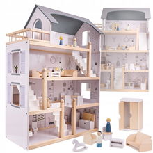 DUŻY DREWNIANY DOMEK DLA LALEK + MEBELKI VALETTI