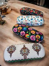 CZARNE ETUI NA OKULARY FOLK - HAFT ŁOWICKI - FIOLETOWA RÓŻA AKSAMIT