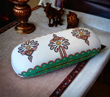 CZARNE ETUI NA OKULARY FOLK - HAFT ŁOWICKI - ŻÓŁTA RÓŻA AKSAMIT