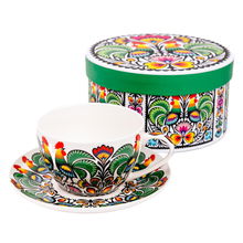 FILIŻANKA FOLK 220 ML W PUDEŁKU WZORY ŁOWICKIE