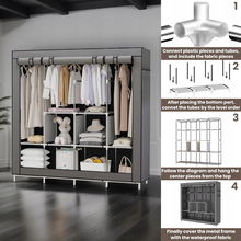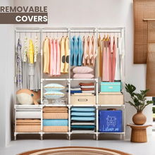 SZAFA MATERIAŁOWA TEKSTYLNA GARDEROBA Z PÓŁKAMI WIESZAK NA UBRANIA SZAFKA
