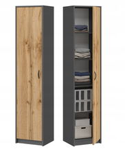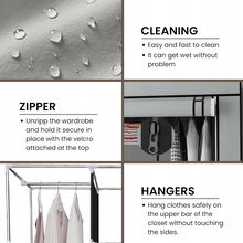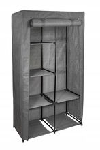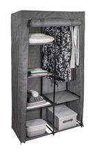 SZARA SZAFA TEKSTYLNA Z PÓŁKĄ I DRĄŻKIEM NA WIESZAKI