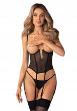 Brenda - Bielizna Erotyczna Czarny Koronkowy Gorset Paski Stringi 2XL