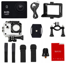 KAMERA SPORTOWA 1080P CZARNA WODOSZCZELNA ZESTAW