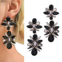 Czarne kwiatowe kolczyki rustykalne metalowe matowe sztyfty damskie wyjście
