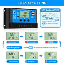 Kontroler ładowania słonecznego 12V/24V 30A USB