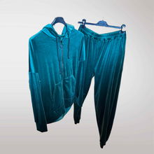 Komplet Dres Welurowy z Kapturem - Beżowy