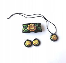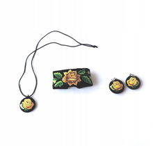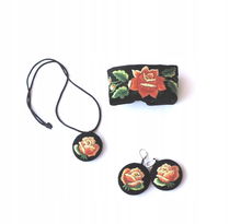 KOMPLET BIŻUTERII FOLK - HAFT ŁOWICKI - RÓŻOWA RÓŻA
