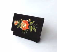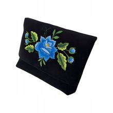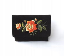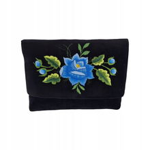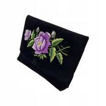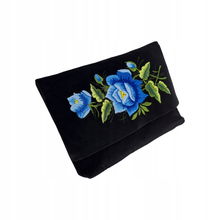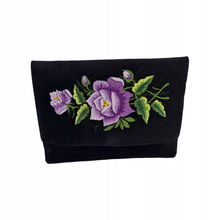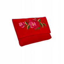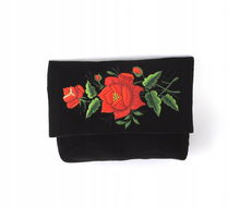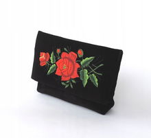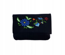 CZARNA KOPERTÓWKA FOLK Z HAFTEM ŁOWICKIM - CZERWONA RÓŻA HANDMADE
