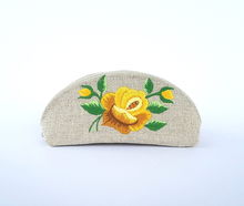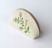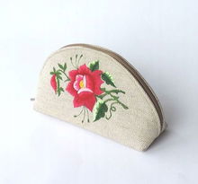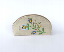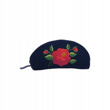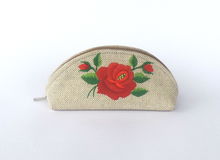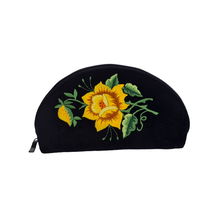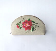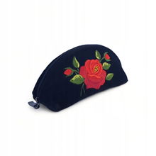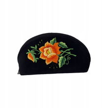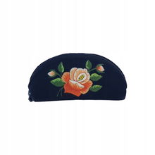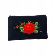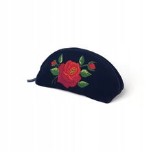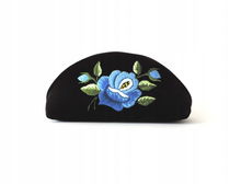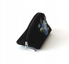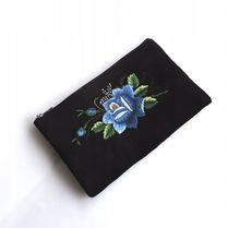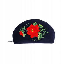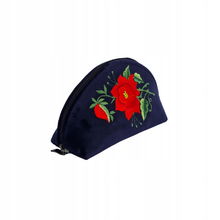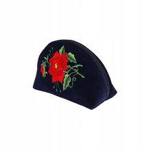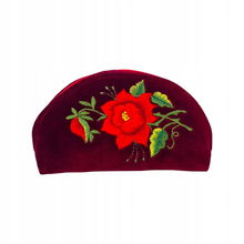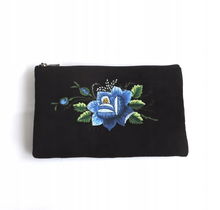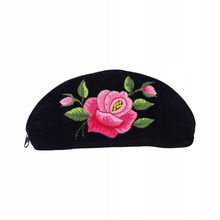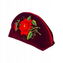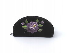 PŁASKA KOSMETYCZKA Z AKSAMITU FOLK - HAFT ŁOWICKI FIOLETOWA RÓŻA