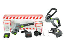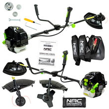 PODKASZARKA AKUMULATOROWA 21V 2xAKU 4 OSTRZA Z KOŁAMI DO TRAWY KRZEWÓW