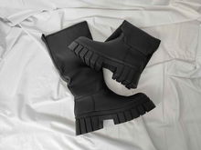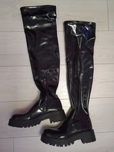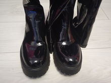 SHEIN Czarne lakierowane kozaki wzór (39)