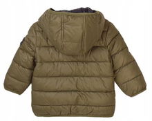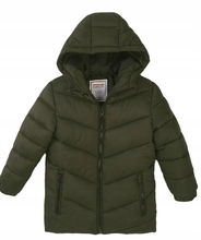 Kurtka zimowa pikowana z kapturem moro dla chłopca 98