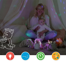 Lampka nocna projektor Pabobo odcienie niebieskiego dla dzieci z muzyką