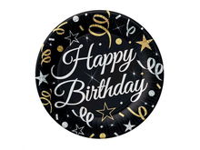 Talerzyki, Happy Birthday, złote, 23 cm, 6 szt.