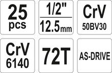 ZESTAW NARZĘDZIOWY 1/2", 25 CZĘŚCI, L