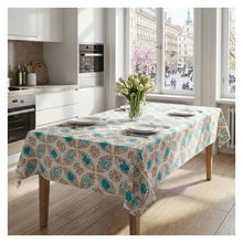 GAMUSI Prostokątny Obrus kolor lniany ze wzorem Blue Fish 140x240 cm