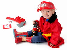 KOSTIUM MAŁEGO STRAŻAKA Z KASKIEM I GAŚNICĄ