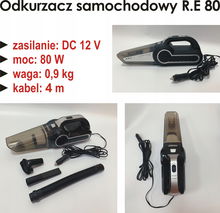 MOCNY ODKURZACZ RĘCZNY SAMOCHODOWY PRZEWODOWY 5M 120W + FILTR + 3 KOŃCÓWKI