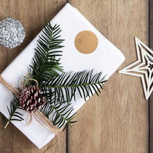 Świąteczna torebka papierowa EKO L, 32x23 cm, beżowa, z choinką i płatkami.