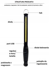 Lampa warsztatowa LED COB z magnesem reg. moc USB
