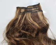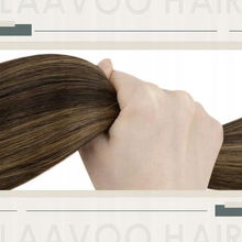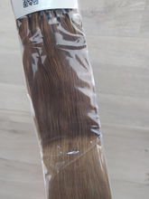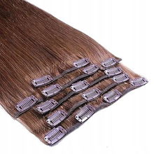 Prawdziwe włosy 40 cm 50 pasemek balejaż brązowe do karmelowego blondu