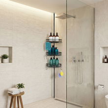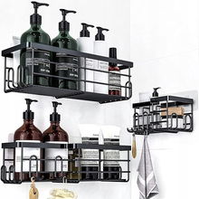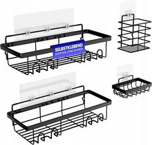 Półka łazienkowa prysznicowa z haczykami + dozowniki Zestaw Kolor Czarny