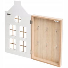 Szafka na klucze drewniana otwarta biała z haczykami do powieszenia HOME 24