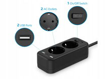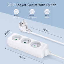 Sześciokątne gniazdko wtykowe Cube z kablem, 5 gniazdek z 5 gniazdami AC,