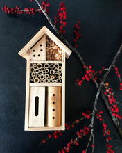 Domek hotel budka lęgowa pszczoły owady motyle naturalne drewno czarna