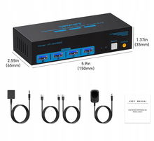 Przełącznik KVM HDMI 2.1 Konsola Switch 4K 120Hz 8K 2 4xUSB 3.0 2xPC 1Ekran