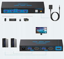 KONSOLA KVM 2x2 HDMI 2.0 4xUSB 3.0 Przełącznik Matryca Switch 2 monitory 4K