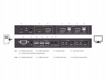 KVM Switch HDMI DP 2x2 KONSOLA PRZEŁĄCZNIK DISPLAYPORT 2 Monitory 4xUSB 3.0