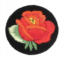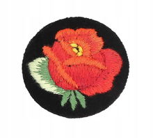 Przypinka z haftem łowickim z czerwoną różą (na białym tle) - broszka