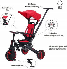 Rowerek trójkołowy 4w1 z rączką do pchania dla dzieci 1-3 lata CZARNY