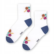 Stopki frotte ABS damskie folk - kwiat łowicki - granatowe - 35-37