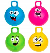 Piłka do skakania gumowa skacząca dla dzieci 45cm różowa z buźką uśmiech